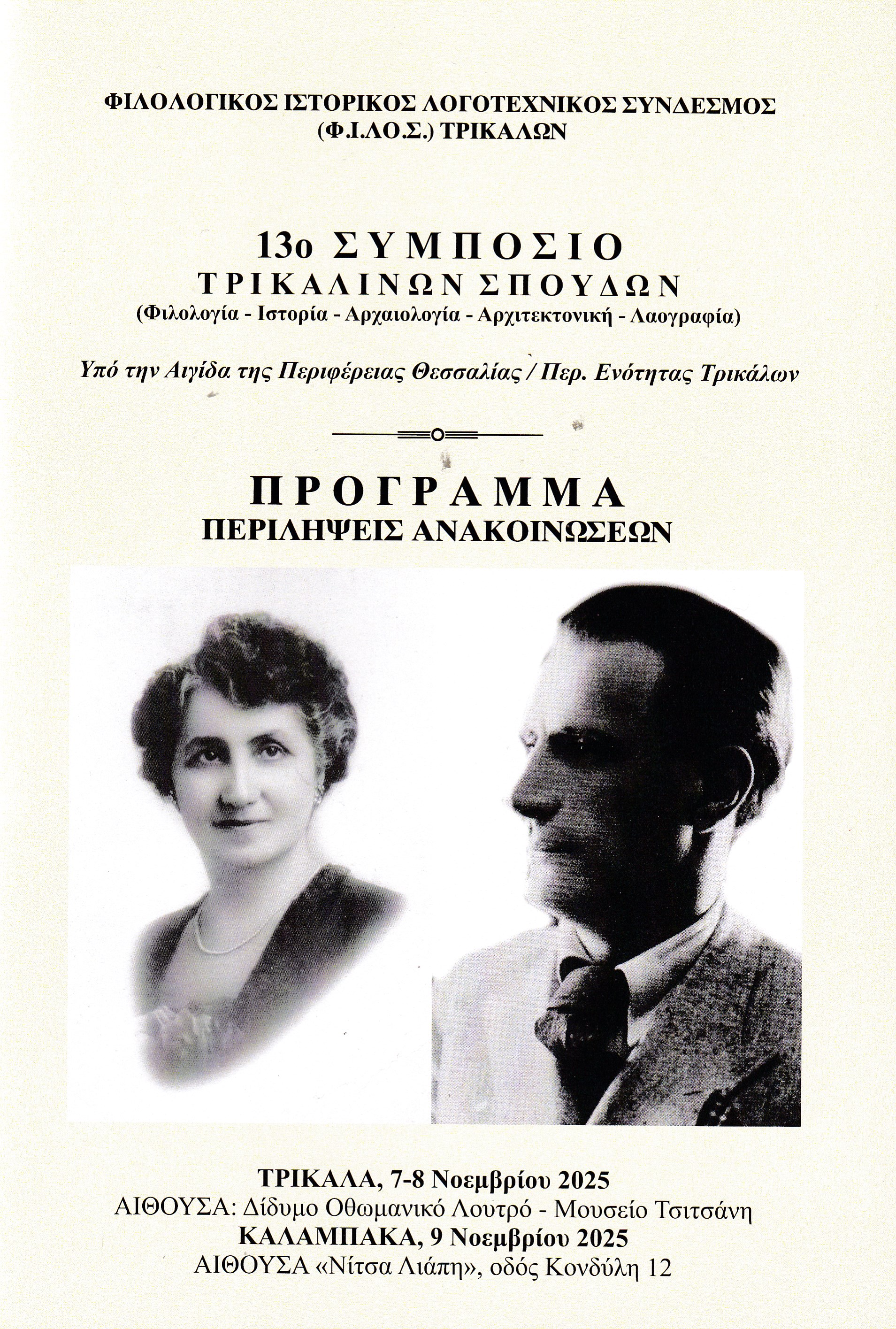 – Κατάλογος Συνέδρων 13ου Συμποσίου Τρικαλινών Σπουδών (σελ. 7).