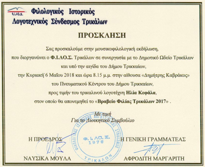 Φιλολογικός Ιστορικός Λογοτεχνικός Σύνδεσμος (Φ.Ι.ΛΟ.Σ.) Τρικάλων