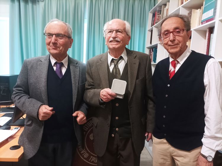 Επακολούθησε η απονομή του «Βραβείου Τρικάλων» (Δίπλωμα Τιμής και Μετάλλιο) στον κ. Δημ. Πλιάτσικα από τον πρόεδρο και τον αντιπρόεδρο του Φ.Ι.ΛΟ.Σ. κ. Θεόδωρο Νημά και κ. Δημήτριο Σούλα, οι οποίοι υπήρξαν μαθητές του στο Α΄ Γυμνάσιο Αρρένων Τρικάλων.