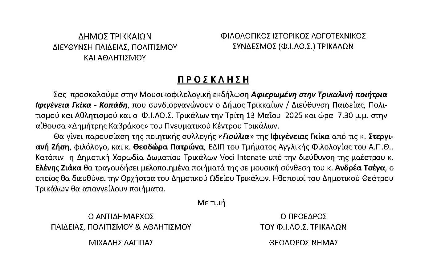– Κατάλογος Συνέδρων 13ου Συμποσίου Τρικαλινών Σπουδών (σελ. 7).