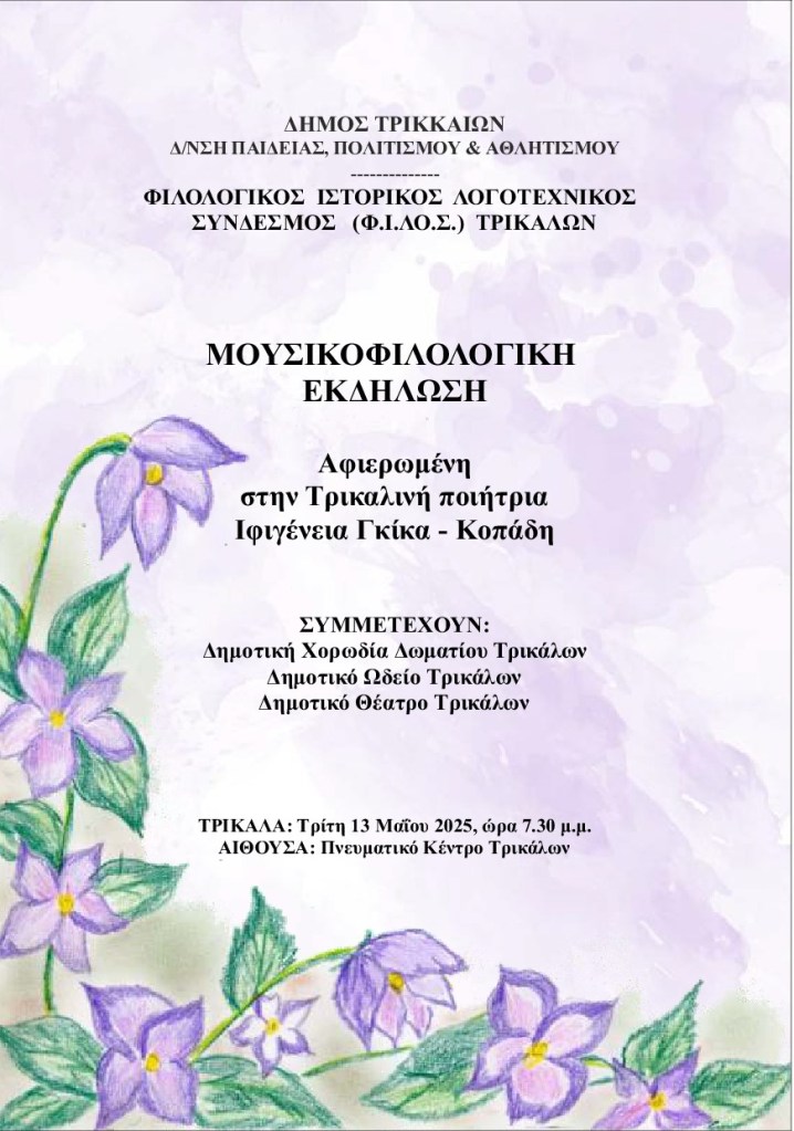 Με μικρή καθυστέρηση, λόγω του ότι περιλαμβάνει τα «Πρακτικά του 13ου Συμποσίου Τρικαλινών Σπουδών», το οποίο διεξήχθη προσφάτως (Νοέμβριος 2025), θα κυκλοφορήσει έως το τέλος Ιανουαρίου 2026 ο 45ος τόμος (2025) του ετησίου επιστημονικού περιοδικού «ΤΡΙΚΑΛΙΝΑ». Ήδη ο τόμος έχει σταλεί προς εκτύπωση. Τα «ΤΡΙΚΑΛΙΝΑ» εκδίδει ανελλιπώς από το 1981 ο Φιλολογικός, Ιστορικός, Λογοτεχνικός Σύνδεσμος (Φ.Ι.ΛΟ.Σ.) Τρικάλων.